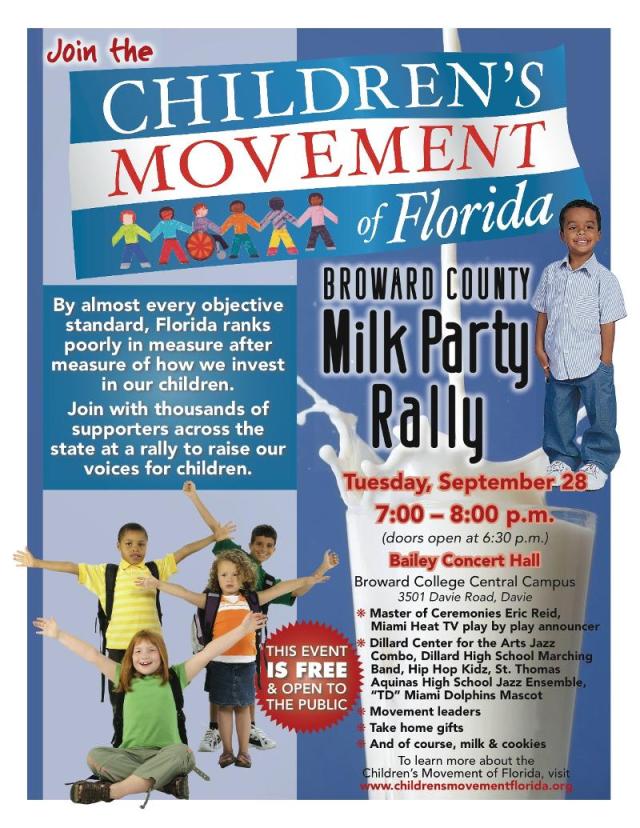As we posted earlier, the Children’s Movement of Florida is a recently-formed nonpartisan group, based in Tallahassee, that is dedicated to improving the lives of all kids in Florida. They’ve adopted the “Milk Party” moniker, and are presently traveling throughout the state to share their “Milk Party” ideals with others.